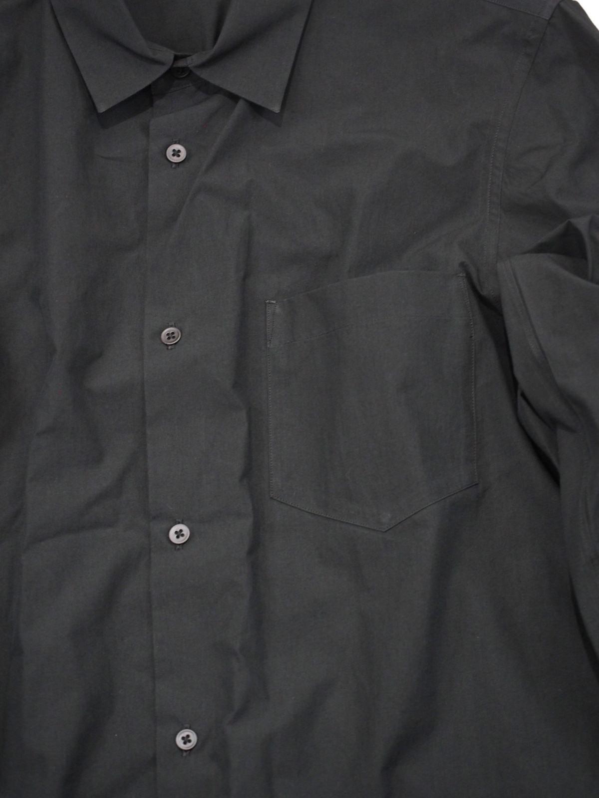 スタンダートなシャツを身幅や着丈を調整し、リラックス感ある着心地に仕上げながら、ドレスシャツのような上品な雰囲気が特徴です。