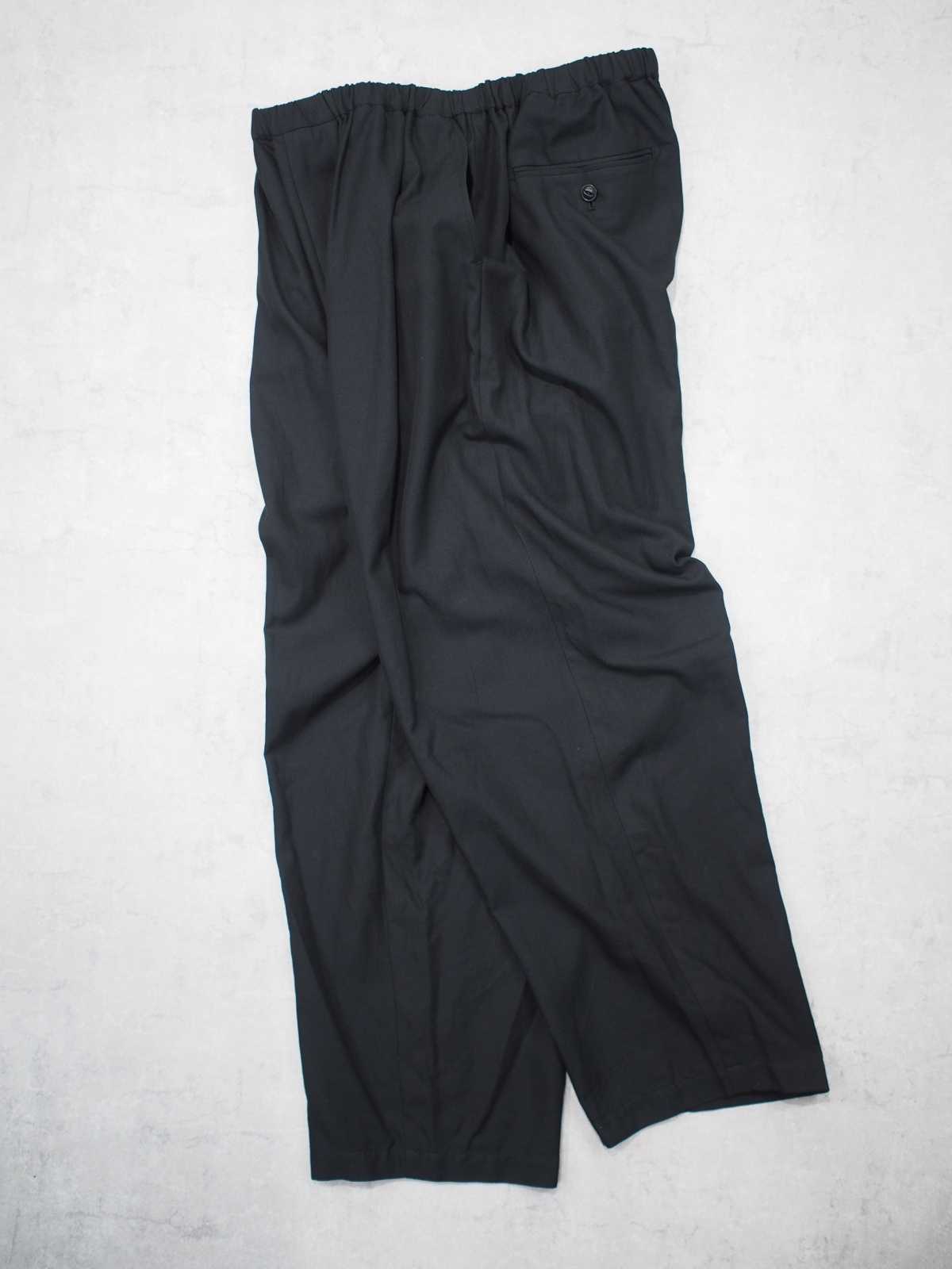 ウエストに大胆なシャーリング(ヒダ)を持たせたリラックスフィットのイージーパンツ。