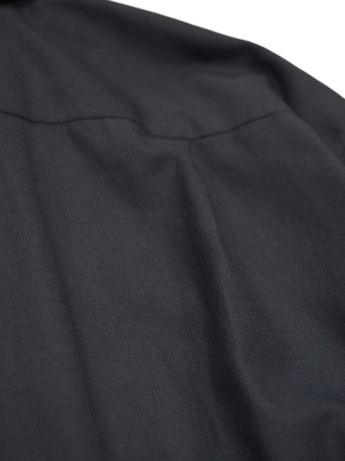 ドレスシャツらしい上品なパターンメイキングで有りながら、程よくドロップしたショルダーライン、ゆったりと広い身幅、力の抜けたルーズなサイズ感が特徴。