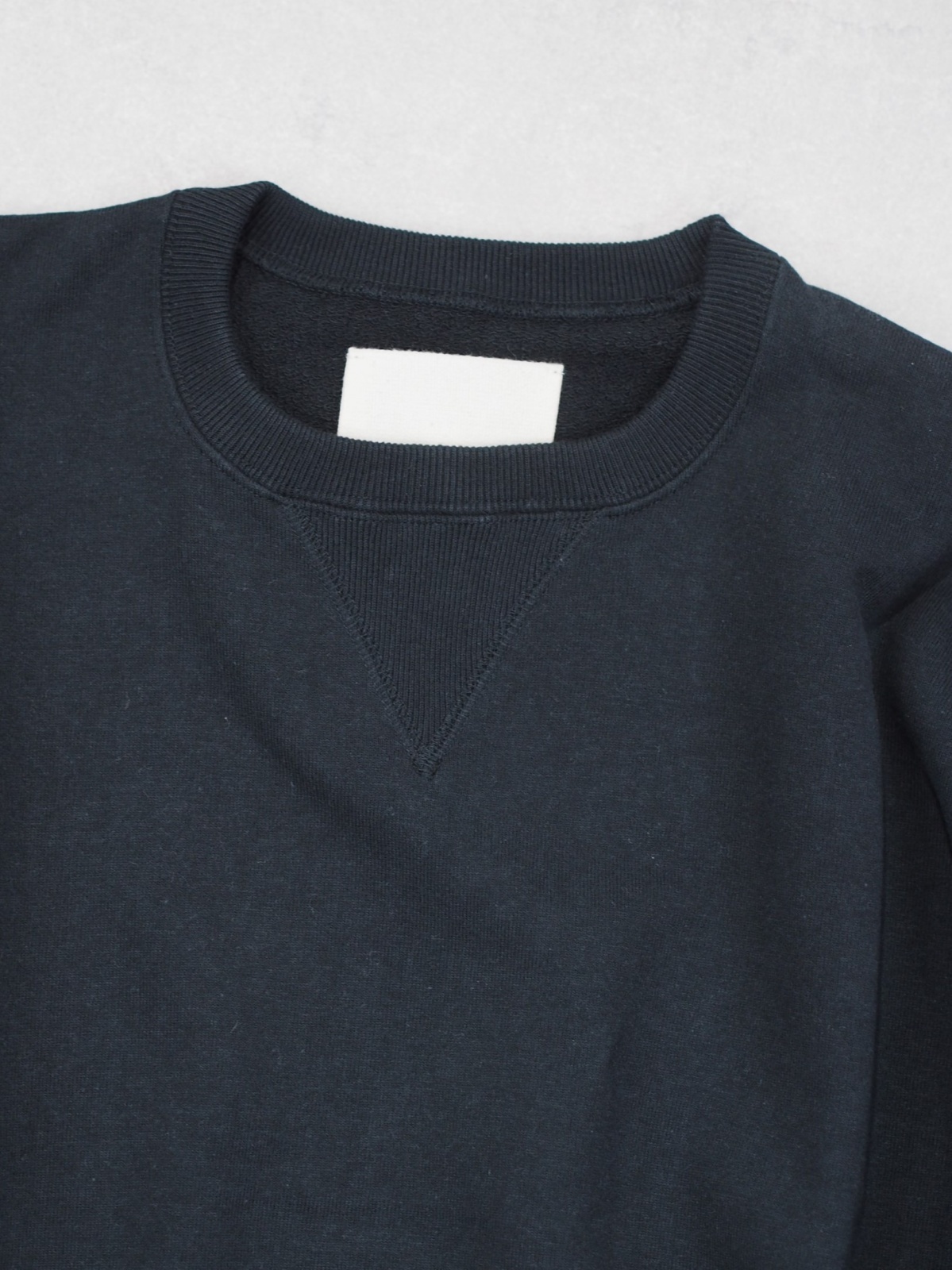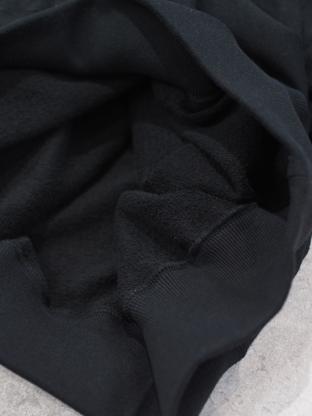 しっかりと度目を詰めて編立てられた3飛び裏毛ですが、吊り編みならではの空気を含んだふっくらとした生地感と、着用と洗濯を重ねてもダレずに身体に馴染むキックバック( 伸縮性 )が特徴です